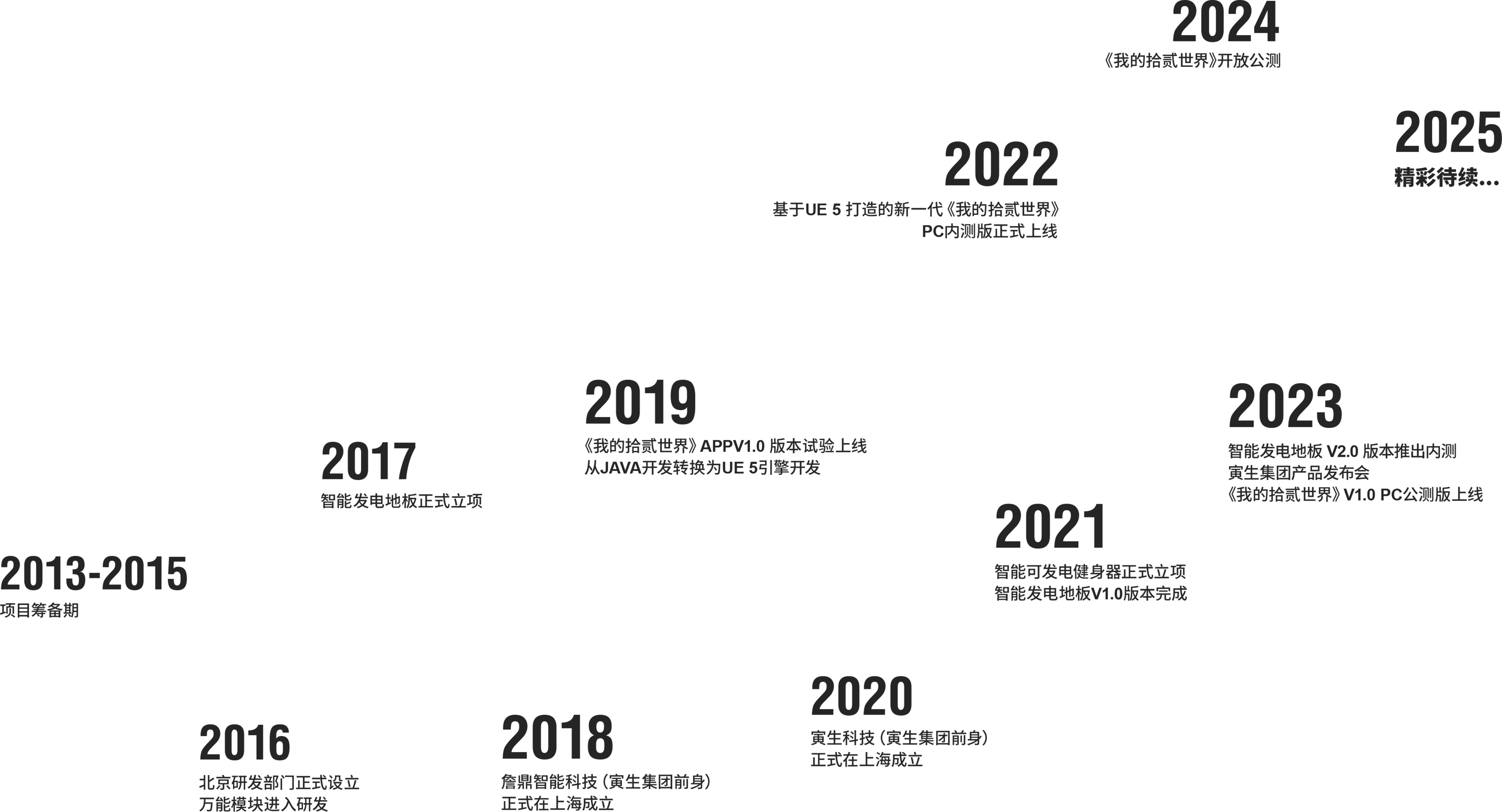 公司成立于2011年,寅生集团始终致力于"将想象搬进现实",以科技创新推动虚拟与现实世界的深度融合。集团以网络空间命运共同体为核心发展方向,通过自主研发的智能硬件与元宇宙平台,构建虚实互通的万物互联生态,用科技手段解决社会问题,增强企业社会责任,打造出一个虚实互通的万物互联大生态,让科技真正服务于人类社会的可持续发展。